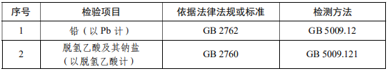 GB 2760 食品安全國家標準 食品添加劑使用標準 GB 2762 食品安全國家標準 食品中污染物限量 GB 5009.12 食品安全國家標準 食品中鉛的測定 GB 5009.121 食品安全國家標準 食品中脫氫乙酸的測定